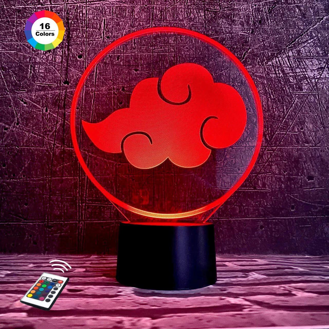 3D нічник "Знак Акацуку" (ВОЛІЧНЕ ЗОБРАЖЕННЯ) подарункове паковання + 16 кольорів + пульт ДК + мережевий адаптер + батарейки (3ААА) 3DTOYSLAMP