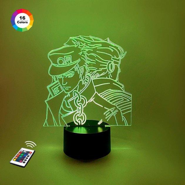 3D нічник "Джотаро Куджо" (ВОЛІЧНЕ ЗОБРАЖЕННЯ)+ пульт ДК + мережевий адаптер + батарейки (3ААА) 3DTOYSLAMP