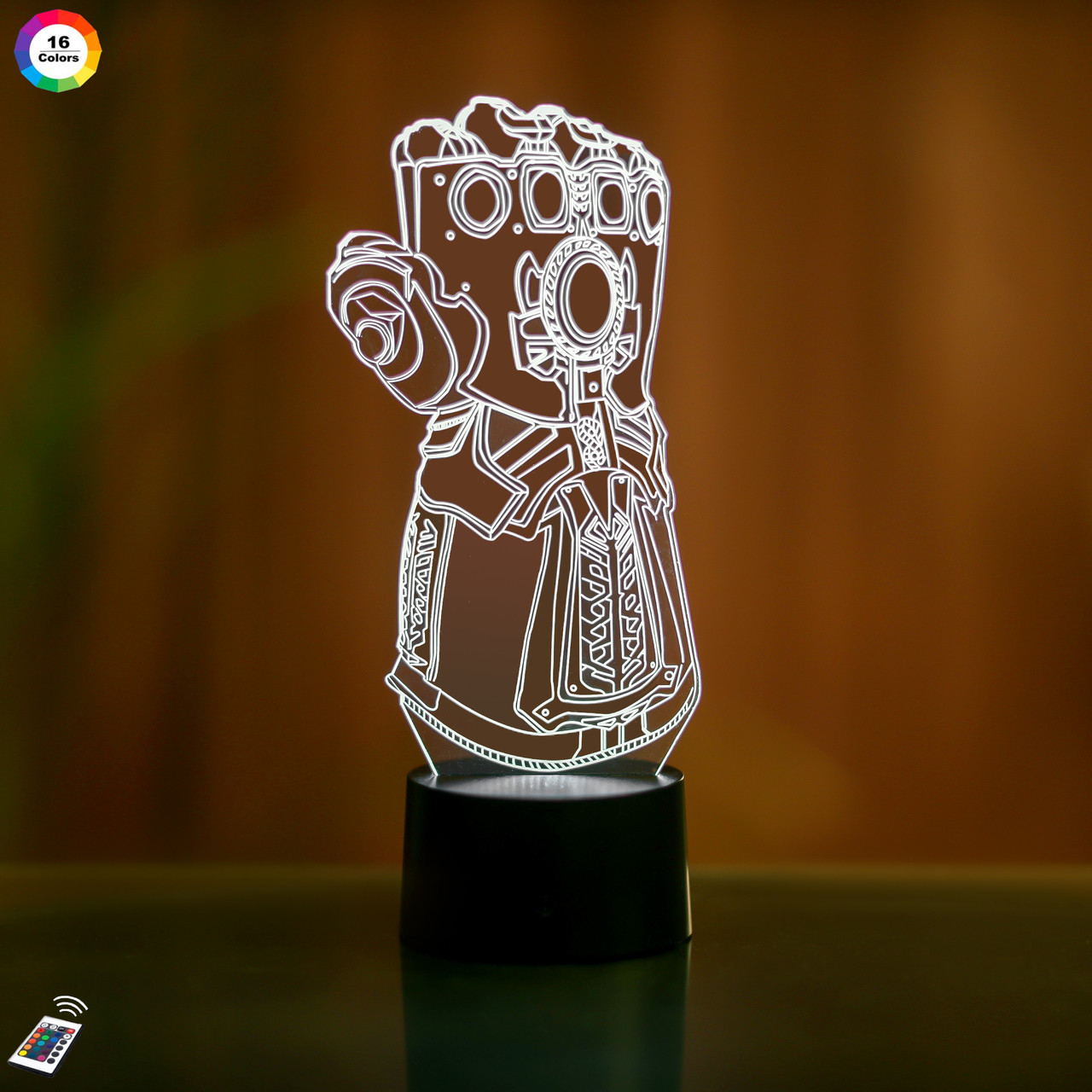 3D нічник "Перчатка Таноса" (ВОЛІЧНЕ ЗОБРАЖЕННЯ) подарункове паковання + 16 кольорів + пульт ДК + мережевий адаптер + батарейки (3ААА) 3DTOYSLAMP