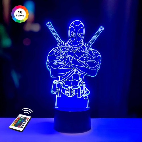 3D-нічник "Дедпул 5" (УВАЛИЧЕННЕ ЗОБРАЖЕННЯ) подарункове паковання + 16 кольорів + пульт ДК + мережевий адаптер + батарейки (3ААА) 3DTOYSLAMP
